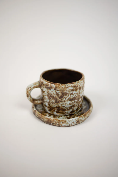 Materiale/ StengodsMål/ kopp Ø 8 x H 6 cm. Fat Ø 11 cm.