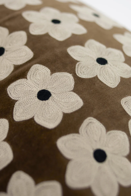 Putetrekk i bomullsfløyel med broderi.