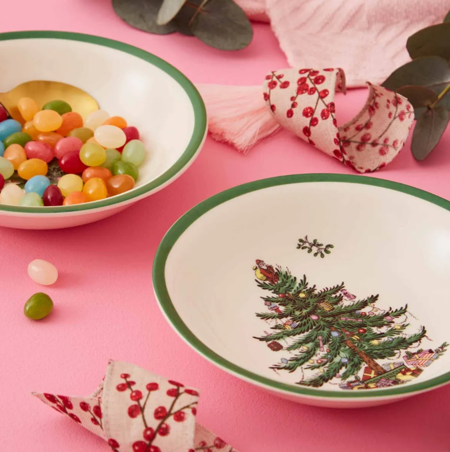 Christmas Tree fra Spode er elsket for sin nostalgi og varme erindringer fra tidligere jul og ble designet 1938. Serviset har det vakre juletreet i sentrum, med fargerike kuler hengende fra grenene og en haug med gaver under.