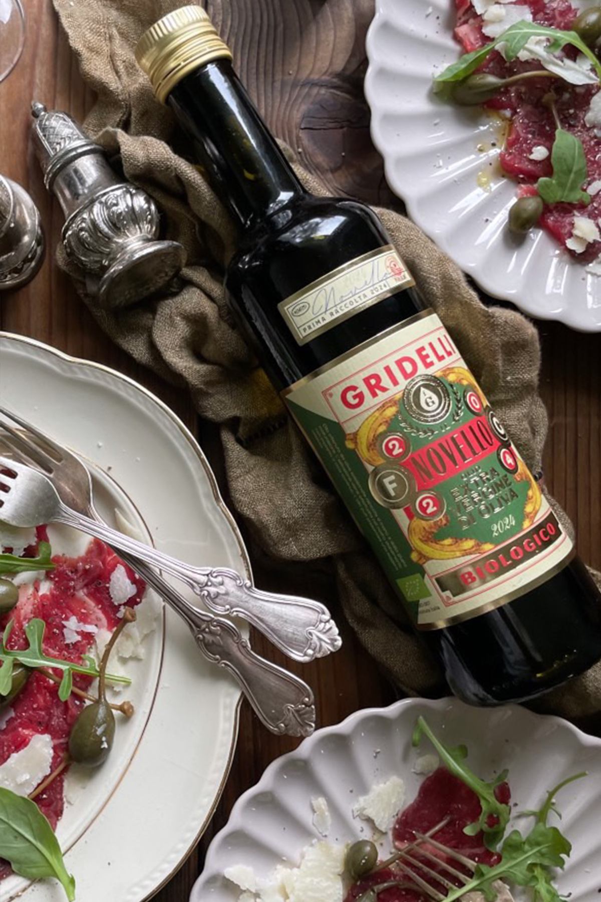 Økologisk olivenolje av høyeste kvalitet, extra virgin. Lages på oliventypen Correggiolo som vokser i åsene utenfor Rimini. Novello er navnet på den første pressingen fra årets høsting. Olivenene plukkes for hånd samme dag de skifter fra grønt til fiolett, for så å bli presset på samme gård innen 24 timer. Siden olivenene er på grensen til modne når de plukkes, må det brukes flere oliven enn ved senere pressinger. Det er dette som gir Novello sin distinkte smak. Man kan kjenner toner av gress og artisjokk, med en pepperaktig ettersmak. Den kan med fordel brukes «rå», for eksempel over en god caprese eller en grønn salat.