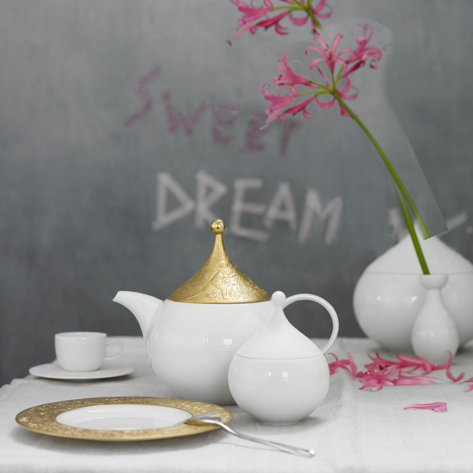 Fantastisk tynt og flott porselen med dekor i relieff. Du kan får de dekorerte delene med eller uten gull.